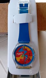 Orologio swatch prodotto in serie limitata per il gruppo Italgas, disegnato dal maestro Ugo Nespolo Mai usato, con scatola in ferro con protezione.