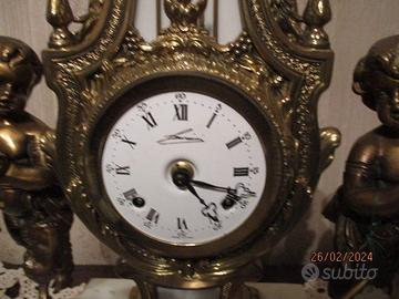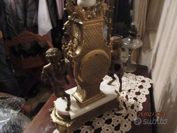 Orologio da mensola/camino stile impero, originale primi del 900, manifattura francese . Come nuovo e funzionante, movimento meccanico. Struttura ottone e marmo. Visibile a Biella
