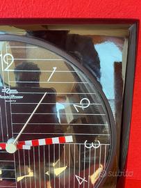 orologio da parete anni 80 di Diamantini e Domeniconi azienda Italiana fondata nel 1968 a Pesaro Urbino, l’orologio ha la scocca in legno laccato nero con due particolari lancette bianche e rosse con fondo nero e righe bianche classico degli anni 80 , funziona con batteria a stilo non inclusa….misura 23x23x 2,5 cm. Spedizione a vostro carico o ritiro a mano a Parabiago…
