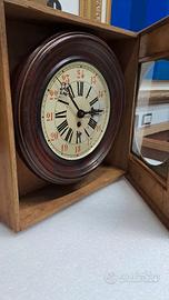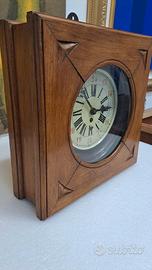 Orologio da parete d'epoca,cassa in legno di noce. Misure 36x36 cm. Meccanica da revisionare.