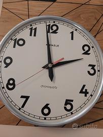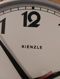 Orologio da parete Kienzle Vintage anni 70, funzionante (mancante di vetro, fermi per il quadrante sulla cornice è rotella per la regolazione dell'ora). Il marchio Kienzle è noto per la sua lunga storia nel settore dell'orologeria tedesca (con una storia che risale al 1822). L'orologio è un modello "chronoquartz" con numeri neri su sfondo bianco e lancette nere. Kienzle oggi è riconosciuto come un marchio di lusso, noto per la sua attenzione ai dettagli, la qualità dei materiali e l'utilizzo di movimenti svizzeri di alta precisione.