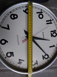 Orologio da parete Kienzle Vintage anni 70, funzionante (mancante di vetro, fermi per il quadrante sulla cornice è rotella per la regolazione dell'ora). Il marchio Kienzle è noto per la sua lunga storia nel settore dell'orologeria tedesca (con una storia che risale al 1822). L'orologio è un modello "chronoquartz" con numeri neri su sfondo bianco e lancette nere. Kienzle oggi è riconosciuto come un marchio di lusso, noto per la sua attenzione ai dettagli, la qualità dei materiali e l'utilizzo di movimenti svizzeri di alta precisione.