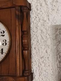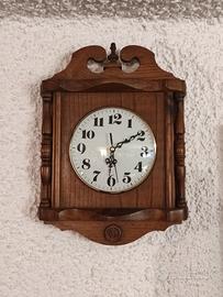 Orologio da parete in legno, meccanismo al quarzo, in ottime condizioni. Ottimo anche solo il telaio in legno per decorazioni a colori o decoupage. Altezza cm. 42 larghezza cm. 32. Preferito ritiro diretto.