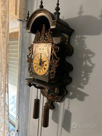 Antico orologio a pendolo da parete movimento westminster carica 8 giorni con suoneria classica batte le ore e le mezze perfettamente funzionante elegantissimo arredo