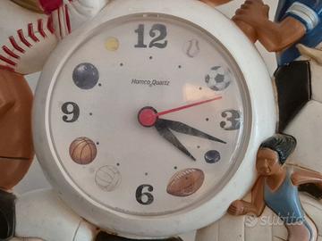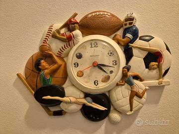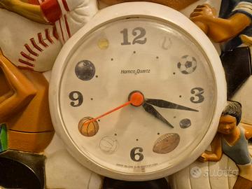 orologio da parete vintage della Homco anno 1994 mede in USA a tema sportivo con raffigurante diverse figure sportive Baseball Football basket calcio hockey