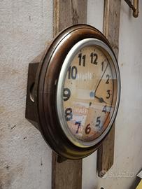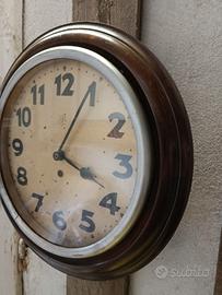 Affascinante orologio originale Junghans (Made in Germany) d'epoca, caratterizzato da un design pulito in pieno stile industriale anni '40/'50. Quadrante con numeri arabi ad alta leggibilità e iconico logo a stella. Splendida patina del tempo originale, ideale per arredamento loft, officine o cucine vintage. Cornice in metallo brunito e vetro protettivo bombato. Meccanismo a carica manuale, perfettamente funzionante con proprio peso e chiave originale . Ritiro o spese di spedizione da concordare prima dell'acquisto.