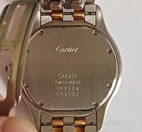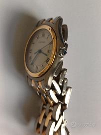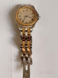 Orologio originale Cartier modello Cougar 187904, 33 mm, cassa e cinturino in oro 18k e acciaio, certificato d'acquisto originale del 02.05.1997, movimento al quarzo, diametro 33 mm, cinturino 16.5 cm (riducibile togliendo maglie) misura adatta per un polso medio da donna o piccolo da uomo. Per evitare costi assicurativi e danneggiamenti durante il trasporto, consiglio il ritiro di persona. L'orologio si trova a Padova e sono disponibile a consegnarlo personalmente in stazione dei treni oppure in parcheggio IKEA attiguo uscita autostrada Padova Est.
