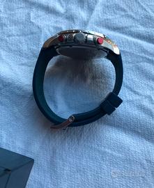 Vendo praticamente mai usato come nuovo, stupendo orologio da polso uomo al quarzo, cronografo e subacqueo mod. A2108G NAUTICA, colore del quadrante blu come il cinturino, cassa color argento in acciaio inossidabile, con confezione originale.