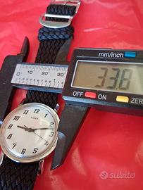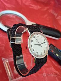 Orologio da polso Timex Mercury, vintage, un modello classico a carica manuale degli anni '70. Questi orologi sono noti per il loro design minimalista e la robusta costruzione meccanica. Ecco alcune caratteristiche tipiche di questo modello: Caratteristiche Principali,cassa sottile. Movimento: Meccanico a carica manuale,Revisionato e lubrificato perfettamente funzionante e preciso in tutto, Cassa: Solitamente in tono argento con un diametro di circa 33,8mm.senza contare la corona Quadrante: Bianco con numeri arabi neri e lancette sottili.
