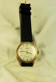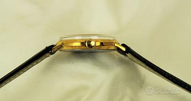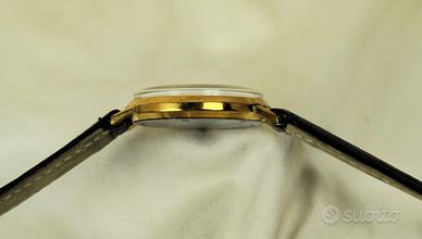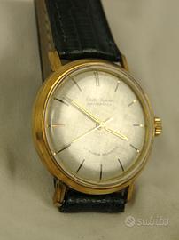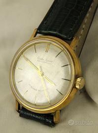 Originale orologio "vintage" da uomo placcato oro Marca " Exita Sport " con cassa tonda e cinghietta in cuoio di coccodrillo, verde bottiglia.