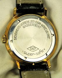 Marchiato sul fondello esternamente " Sicherheits Verschluss - DGM - ( Croce Svizzera ) Pat. US. Pat. - RP - Super Safe ".