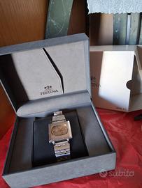 Movimento: Meccanico a carica automatica con 21 rubini (21 rubis) revisionato perfettamente funzionante e preciso tenuto maniacalmente nonostante i suoi anni.con doppia scatola festina