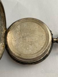 OROLOGIO DA TASCA IN ARGENTO ANCRE LIGNE DROITE 15 RUBIS FINE 800. GRANDE MISURA DIAMETRO MM 60 IN ARGENTO (TUTTO) 800 FUNZIONANTE QUADRANTE IN CERAMICA NON PERFETTAMENTE INTEGRO MECCANISMO SCRITTO NEL TITOLO N. 23160 FERMO DA ANNI E PROBABILMENTE DA REVISIONARE