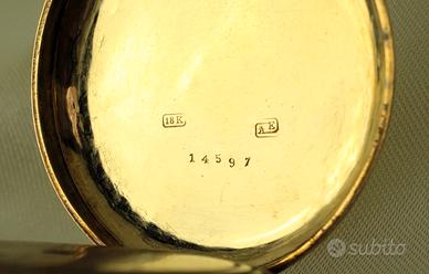Marchiato sul primo fondello internamente " A E - 18 K - 14597 ". Inscrizioni a mano indicanti avvenute revisioni.