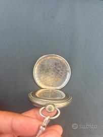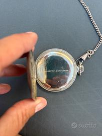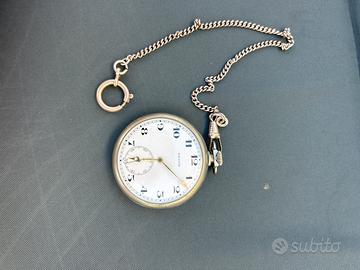 Vendo splendido orologio da tasca antico (modello lepine) della prestigiosa manifattura svizzera Zenith, pezzo autentico risalente al periodo 1918-1920 (verificabile dal numero di serie 5315644). Caratteristiche principali: • Marca: Zenith (Originale). • Materiale: Cassa in "Metal Blanc Garanti" (Alpacca/Argentone), molto resistente e ben conservata. • Quadrante: In porcellana bianca con numeri arabi, in condizioni eccezionali (senza crepe o filature visibili). • Dettagli: Sul retro della cassa è presente l'incisione "Grand Prix Paris 1900", fregio storico della vittoria di Zenith all'Esposizione Universale. • Accessori: Inclusa catenella dell'epoca coordinata. L'orologio è un pezzo di storia dell'orologeria svizzera con oltre 100 anni di vita. Ideale per collezionisti o come regalo di classe per amanti del vintage. Condizioni: Ottime condizioni estetiche come da foto.