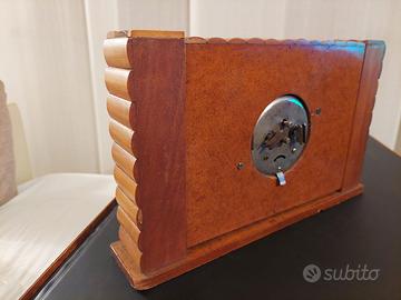 Orologio da tavolo marca Veglia. Anni 40/50. Funzionante, con sveglia, carica manuale. Misure 33 cm larghezza, 20 cm altezza, 6 cm profondità.