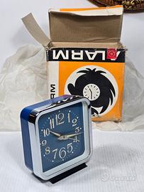 Orologio vintage anni 70 meccanico funzionante caratterizzato da un design in stile "Space Age Oggetto da collezione, venduto con la sua confezione originale. Orologio analogico con funzione di allarme.