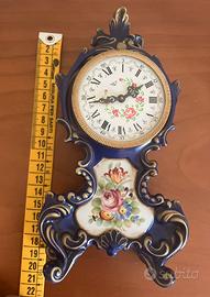 Elegante orologio da tavolo in porcellana finemente decorata a mano con motivi floreali e dettagli dorati.