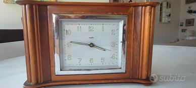 Si tratta di un orologio analogico con cassa in legno e quadrante quadrato con numeri arabi.
