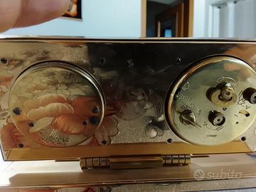 🕰️ Orologio da Tavolo Vintage Europa – Stazione Meteo Completa – Anni '50/'60 – Germany Elegante e raffinato orologio da tavolo vintage marca Europa, produzione Germania anni '50 / primi '60, con stazione meteo completa integrata. Oggetto decorativo di grande fascino in stile Mid-Century, perfetto per arredamento vintage, studio, ufficio o collezionisti di orologi meccanici. 🔧 Caratteristiche: • Orologio meccanico a carica manuale 7 Jewels • Termometro centrale (°C / °F) • Barometro con previsioni meteo (Tempesta, Pioggia, Variabile, Bel Tempo) • Funzione allarme/sveglia funzionante • Struttura in metallo dorato con base decorata probabile ottone• Produzione Germany (anni '50/'60) ✅ Tutto funzionante: Orologio tiene il tempo Termometro funzionante Barometro funzionante Allarme funzionante 📏 Condizioni: Ottime condizioni generali per l'età, normale patina del tempo che ne valorizza il fascino vintage. Oggetto completo e ben conservato. 🎯 Ideale per: Collezionisti Arredamento vintage / mid-century Regalo elegante e originale Studio, ufficio o libreria Oggetto sempre più ricercato e difficile da trovare completo e funzionante. prezzo trattabile Consegna a mano oppure spedizione accurata disponibile.