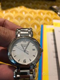 Il Longines PrimaLuna è un elegante orologio da donna dalle linee morbide e rotonde che avvolgono delicatamente il polso. Il modello L8.114 presenta una cassa da 34 mm e un movimento al quarzo (calibro L263). La referenza L8.114.4.16.6 presenta un quadrante argentato con numeri arabi a ore 12 e 6.