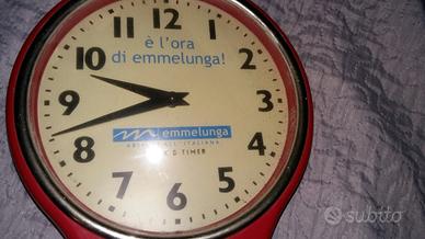 È l ora di Emmelunga! Pubblicità negozio italiano di arredamento Orologio da parete pubblicitario gadget Perfette condizioni, messo in disparte come funzionante, ma adesso non funziona.. Si dovrebbe sistemare un po