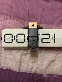 Questo è un orologio a palette Cloudnola Timeline AM/PM con finitura in metallo color ottone da parete