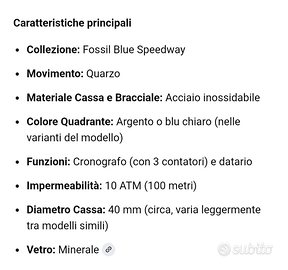 OROLOGIO FOSSIL BLUE , buone condizioni, funzionante, lievemente rovinato sulla parte di allaccio