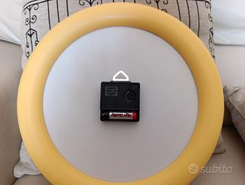 Iconico orologio da parete Guzzini in plastica con bordo giallo. Linee pulite, design moderno e minimalista tipico dell’estetica italiana mid-century. Un tocco di colore perfetto per cucine, living o spazi creativi. Funziona con meccanismo a batteria originale . Diametro: 31 cm,