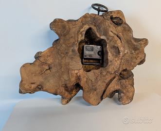 Orologio in radica prodotto negli anni 80. Meccanismo e lancette probabilmente da sostituire.
