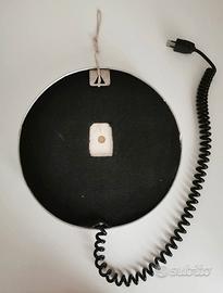 Diametro 33cm, spessore 5cm, alimentato con una batteria da cellulare, lunghezza filo circa 80cm.
