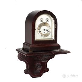 Orologio da appoggio con mensola in legno tinto mogano. Mostra in metallo