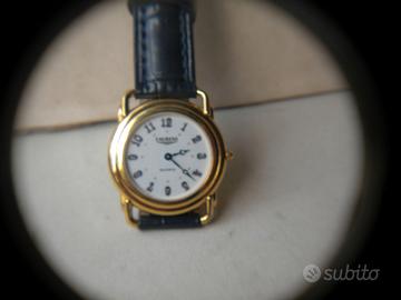 Orologio Laurenz vintage anni 70 uomo cassa acciaio dorato fondello acciaio misura mm.31 movimento quarzo funzionante quadrante vintage originale bianco cinturino pelle nuovo