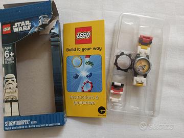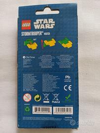 Design Iconico: L'orologio presenta un quadrante con l'inconfondibile casco di uno Stormtrooper e cinturini personalizzabili con mattoncini LEGO (rossi, gialli, neri e bianchi inclusi, pezzi come da foto!).