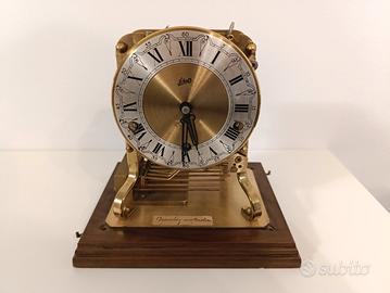 Orologio da tavolo in legno e ottone, con carillon, made in Germany. Chiave di carica inclusa nel prezzo. Proveniente da collezione privata, con leggeri segni del tempo.