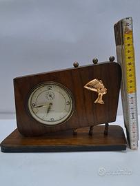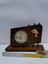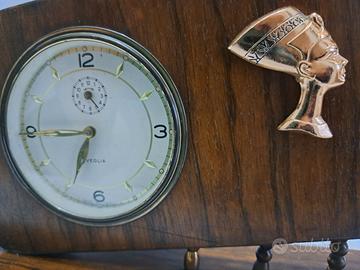 Originale orologio in legno marca Veglia. Usato, funzionante a carica manuale, possibilità inserimento suoneria sveglia. Buono stato, qualche segno del tempo, sul lato posteriore il colore si è leggermente ossidato. Contattatemi per ulteriori info.
