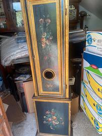 Stupendo oggettetto da intenditori orologio a pendolo da terra in legno decorato con con ricchi soggetti floreali, proveniente dalla Toscana funzionante. Dimensioni h 225/45 /30