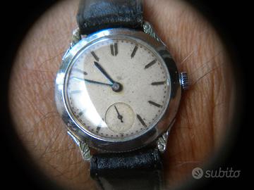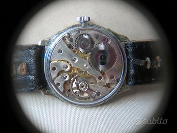 Orologio Militare anni 30 meccanico carica manuale cassa anse fisse cromata misura mm.33 fondello sciupato senza marca anonimo movimento Swiss anonimo funzionante cinturino in pelle