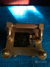 bellissimo antico orologio officier, in bronzo e ottone con vetri bisellati perfetti funzionante con chiave originale misure con manico alzato cm 16,5x8,5x7. le foto non rendono la bellezza dell'orologio.