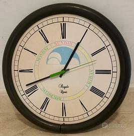 Bellissimo orologio da parte vintage anni 90 marca Royale. L'orologio ha cornice in gomma ed e' in materiale plastico. L'orologio è nuovo funzionante. Ha diametro 32 cm. Sarà accuratamente imballato e spedito.