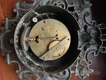Orologio a pendolo da muro fine 1800. Da restaurare per pulizia ma ancora funzionante. Manca il pendolo