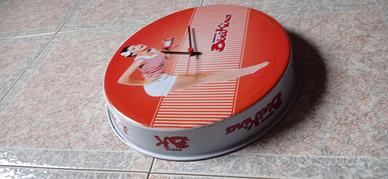 orologio vintage pubblicitario radio Birikina su vassoio in metallo bell 'oggetto tenuto bene da appendere alla parete orologio funzionante
