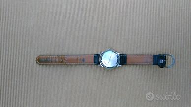 Yacht Club long beach anni 70, datario usato con segni di usura lievi sul davanti ed evidenti sul retro. Cinturino marrone da cambiare.Trattasi di edizione rara con soli due numeri romani XII, VI con la classica bandierina marinara sul quadrante. Movimento preciso.