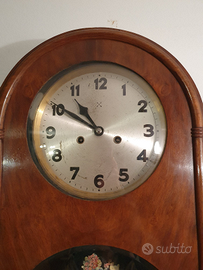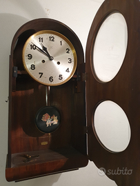 Orologio d'epoca da muro a pendolo, in legno. Funzionante con bellissimo suono ? Misure h58, l31, p16cm Zona axa-casalpalocco-san Giovanni