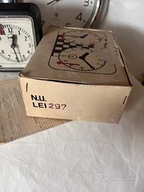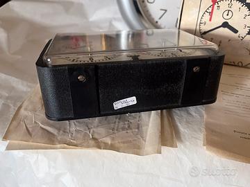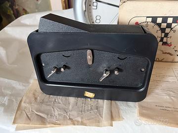 Orologio da scacchi prodotto dalla Victoria-Arad col marchio internazionale Aradora,made in Romania.il movimento ha stampato sulle platine dei due orologi la data di assemblaggio che è’ giugno 1986(VI-86).La struttura e’ in plastica pesante(650 grammi)con un bel quadrante unico che richiama il gioco degli scacchi con la “torre”in basso centralmente.Al top la leva che permette di stoppare e contemporaneamente attivare l’orologio controlaterale.Orologi funzionanti.Completo di box con foglietto di garanzia ed istruzioni(in rumeno).Dimensioni:17x11x5,5 cm di profondità’.Costava 297 lei a quel tempo.Raro a reperirsi nuovo e con box originale! Prezzo non trattabile!