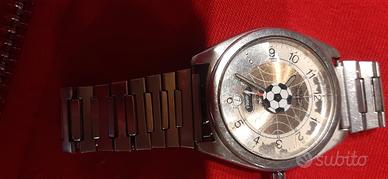 "date" il cui movimento dei secondi e' dato dal movimento a rotazione del pallone centrale , il "date " e' dato dal movimento della mezza luna centrale che ruota i differenti giorni settimanali -- e' completamente funzionante e tutt'ora fornito di propria pila carica - il suo quadrante interno mostra evidenti segni di usura - non ha full set d'origine ( fornisco custodia generica ) -