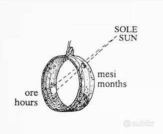 Riproduzione del XVII secolo. Anello solare, strumento usato nella navigazione, tenuto come ciondolo al collo. Quando si vuol riscoprire metodi antichi per orientarsi nelle ore della giornata, magari andando a fare una camminata all’aria aperta, senza dover usare la tecnologia ed i semplici orologi. O semplicemente tenerlo esposto come pezzo delle epoche passate come ho fatto io.