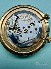 “LeCoultre Co – Seventeen 17 Jewels – Swiss – Unadjusted orologio prodotto da Jaeger‑LeCoultre (all’epoca spesso marchiato solo “LeCoultre” per il mercato americano). È un orologio da tasca vintage svizzero a carica manuale, degli anni 1940–1950. 17 rubini (jewels) → tipico dei movimenti di buona qualità dell’epoca Carica manuale (si vede dalla corona e dal meccanismo interno) e carica sveglia a vibrazione meccanica . Cassa dorata (probabilmente placcata o in oro, completamente revisionato con garanzia appena effettuata da orologiaio specializzato , vera chicca .