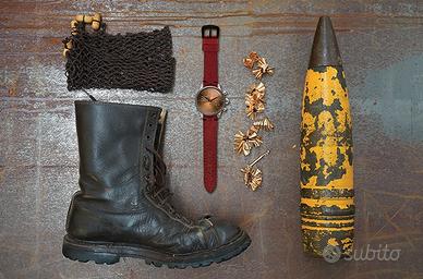 Resistente all'acqua fino a 5 ATM. Edizione limitata realizzata con proiettile originale di calibro 88. Esamino permute con: Audemars, Breitling, Bulgari, Cartier, Chanel, Chopard, Eberhard, Fortis, Girard, IWC , Jaeger LeCoultre, Omega, Panerai, Patek , Heuer, Tudor, Universal, Seiko, Zenith completamente originale in tutte le sue parti.
