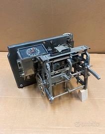 Timbracartellini E. Boselli – Milano, da parete, funzionante ma bisognoso di manutenzione e pulizia ( il bilanciere interno tende a fermarsi ), con rastrelliera portacartellini.